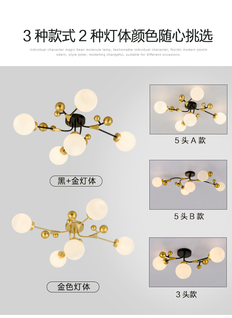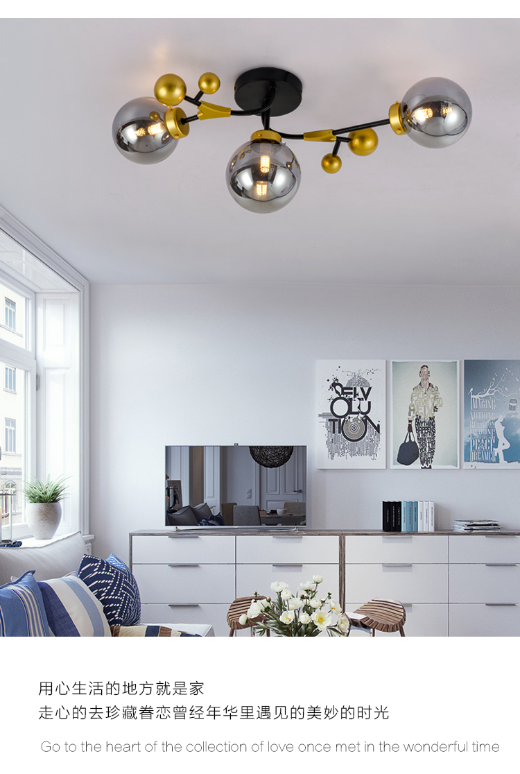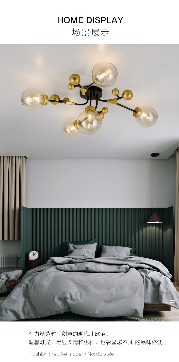 北歐輕奢溫馨浪漫主臥室房間吸頂燈工業風客廳餐廳魔豆燈2019新款